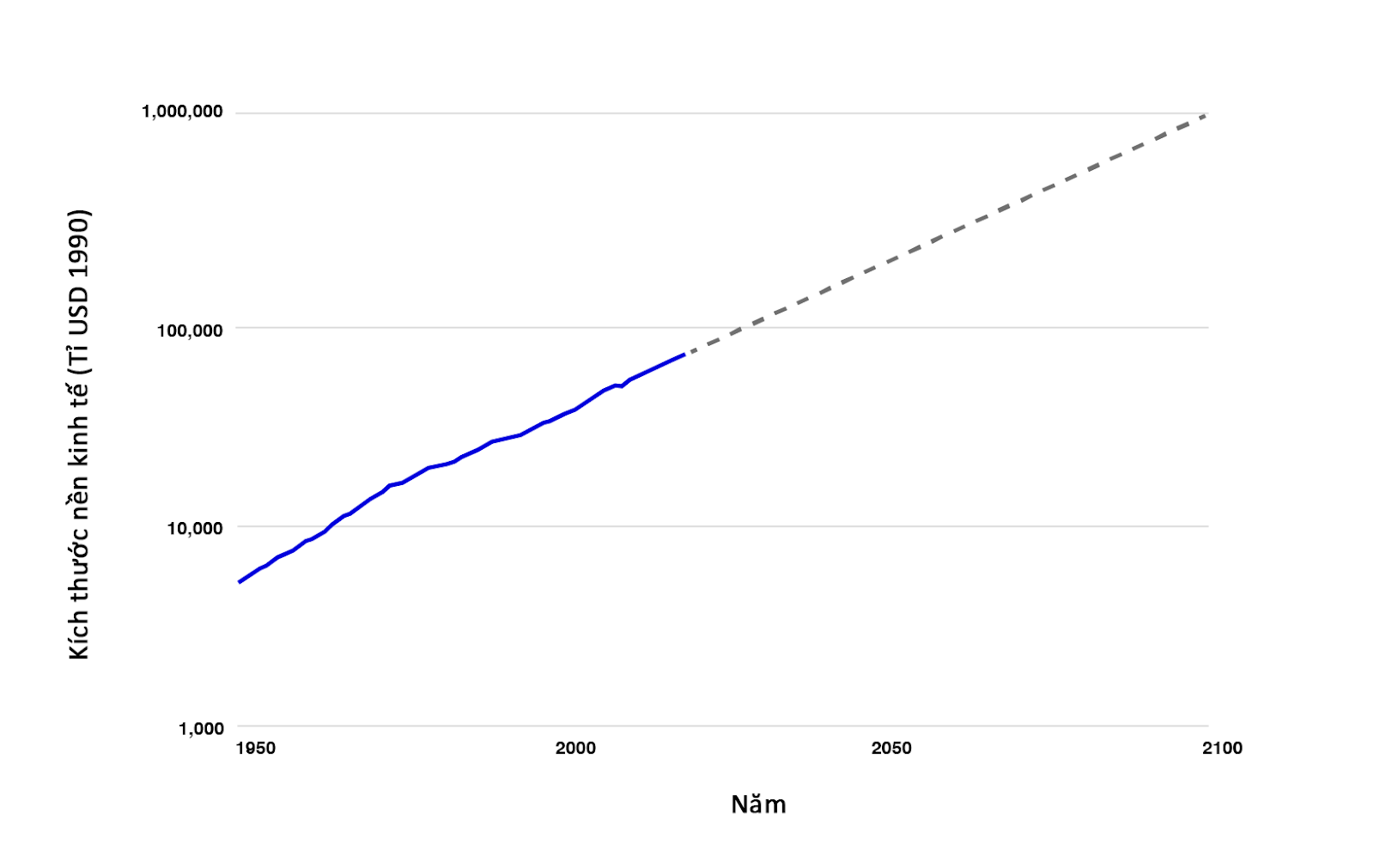 Sự tăng trưởng này đã diễn ra lâu hơn bất kỳ ai trong chúng ta có thể nhớ, nhưng điều đó không quá lâu so với tổng thể – chỉ vài trăm năm, trong số hàng nghìn năm văn minh nhân loại. Đó là một sự tăng tốc lớn, và nó không thể tiếp diễn lâu hơn nữa. (Tôi sẽ làm rõ hơn về “nó không thể tiếp diễn lâu hơn nữa” ở phần dưới.)